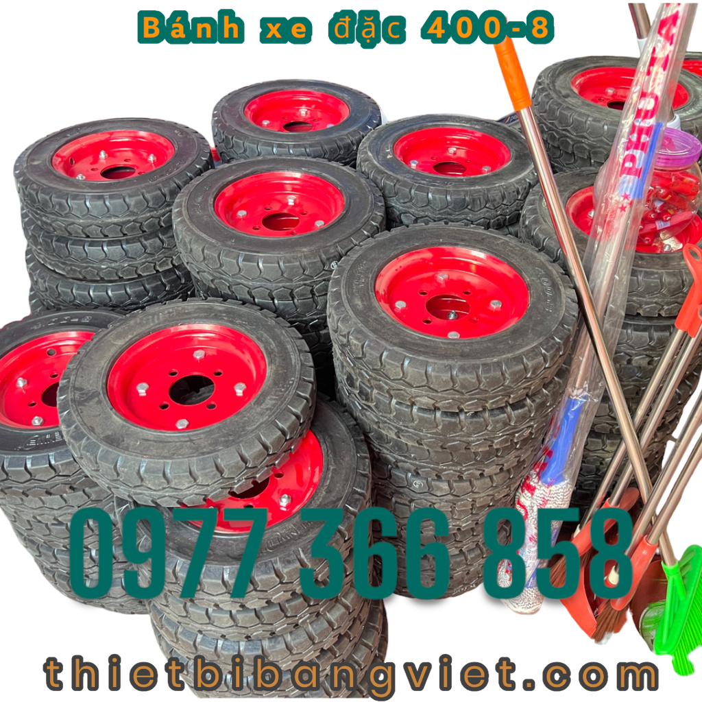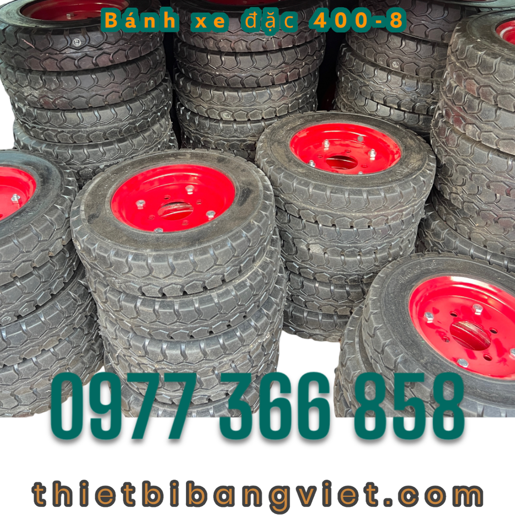 Bánh xe đặc 400-8 là loại bánh xe không có ruột bên trong, được làm từ cao su đặc nguyên khối. So với bánh xe hơi, bánh xe đặc có nhiều ưu điểm nổi bật như: