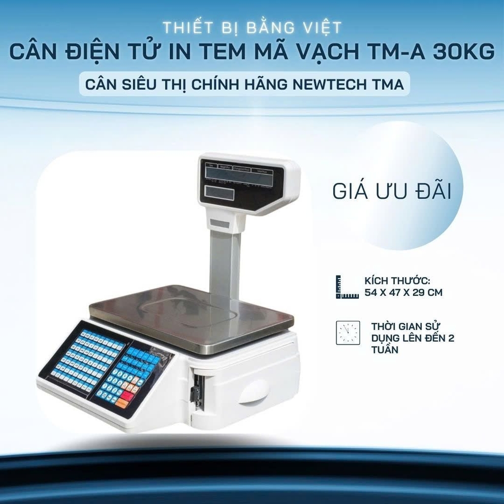 Cân điện tử TMA Newtech là một sản phẩm đột phá trong lĩnh vực cân và in tem sản phẩm kèm theo giá tiền, tên sản phẩm và mã sản phẩm. Với tính năng nổi bật là in phiếu bán hàng, sản phẩm này đáp ứng mọi nhu cầu quản lý bán lẻ một cách hiệu quả và chuyên nghiệp. Đây là sản phẩm truyền thống của ngành bán lẻ và các siêu thị đều bắt buộc sử dụng để cung cấp thông tin chính xác và minh bạch cho khách hàng.