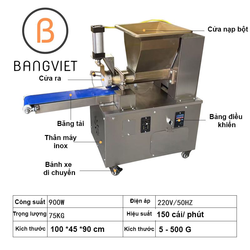 - Máy có khả năng chia bột thành các phần đều nhau với kích thước và khối lượng chính xác, giúp sản phẩm đồng nhất, nâng cao tính thẩm mỹ và chất lượng thành phẩm.