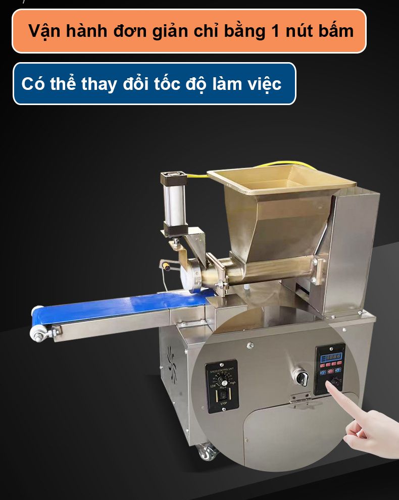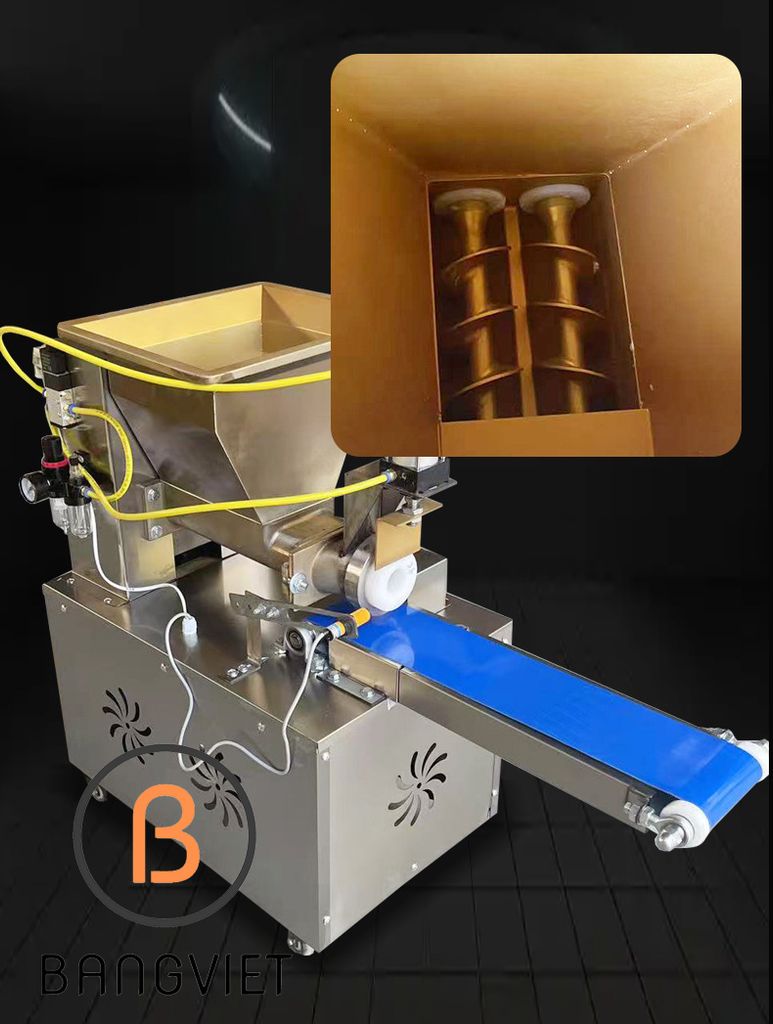 - Đưa khối bột vào phễu nạp, máy sẽ tự động chia và cắt theo kích thước đã cài đặt.