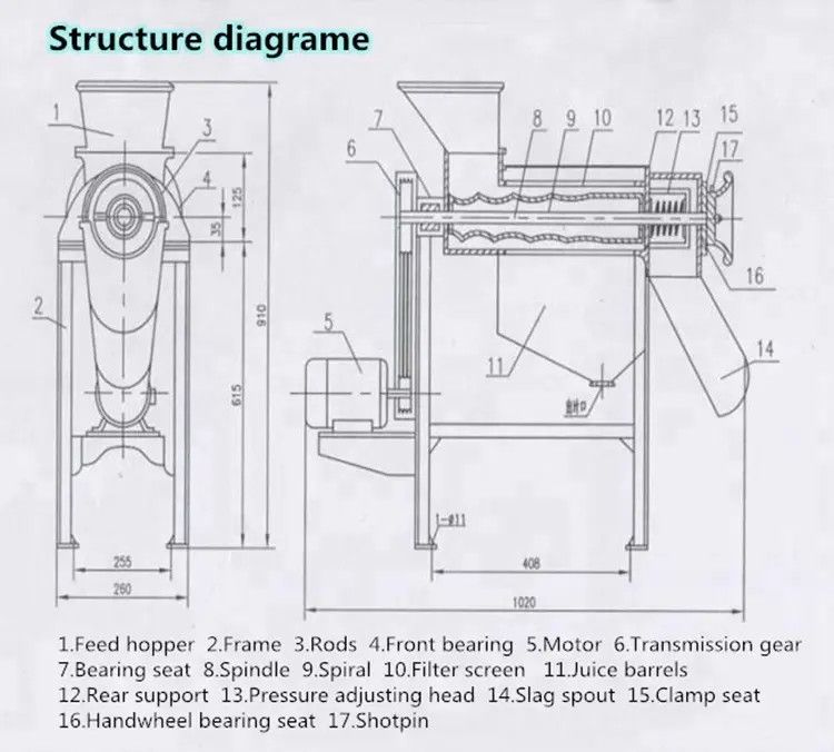 1. Máy này sử dụng vật liệu thép không gỉ 304 chất lượng cao, có thể ép nước ép trái cây và rau quả, với hiệu quả cao, tiêu thụ năng lượng thấp, ưu điểm của tỷ lệ nước ép cao.